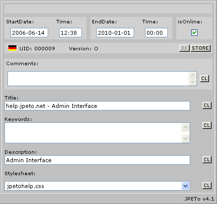 die wichtigsten System Tools findet man im Kopf Bereich des Einzelobjekt-AdminInterfaces. Somit kann man sie von jeder Seite aus rasch durch das Klicken eines beliebigen [EDIT] Buttons erreichen.