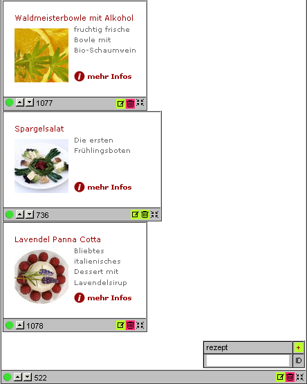 Sollte das Objekt vom aktuellen Administrator bearbeitbar sein, befinden sich am Fußende des grauen Rahmens diverse Steuerbuttons. Mehr über diese Steuerbuttons erfahren Sie im Bereich WYSIWYG-Ansicht