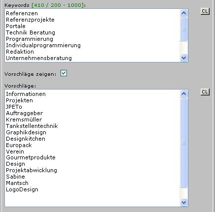 Die Daten werden systemseitig zu einem korrekten Keyword-META-Tag zusammengebaut.