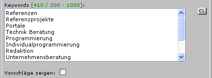 Keywords - Vorschläge anzeigen